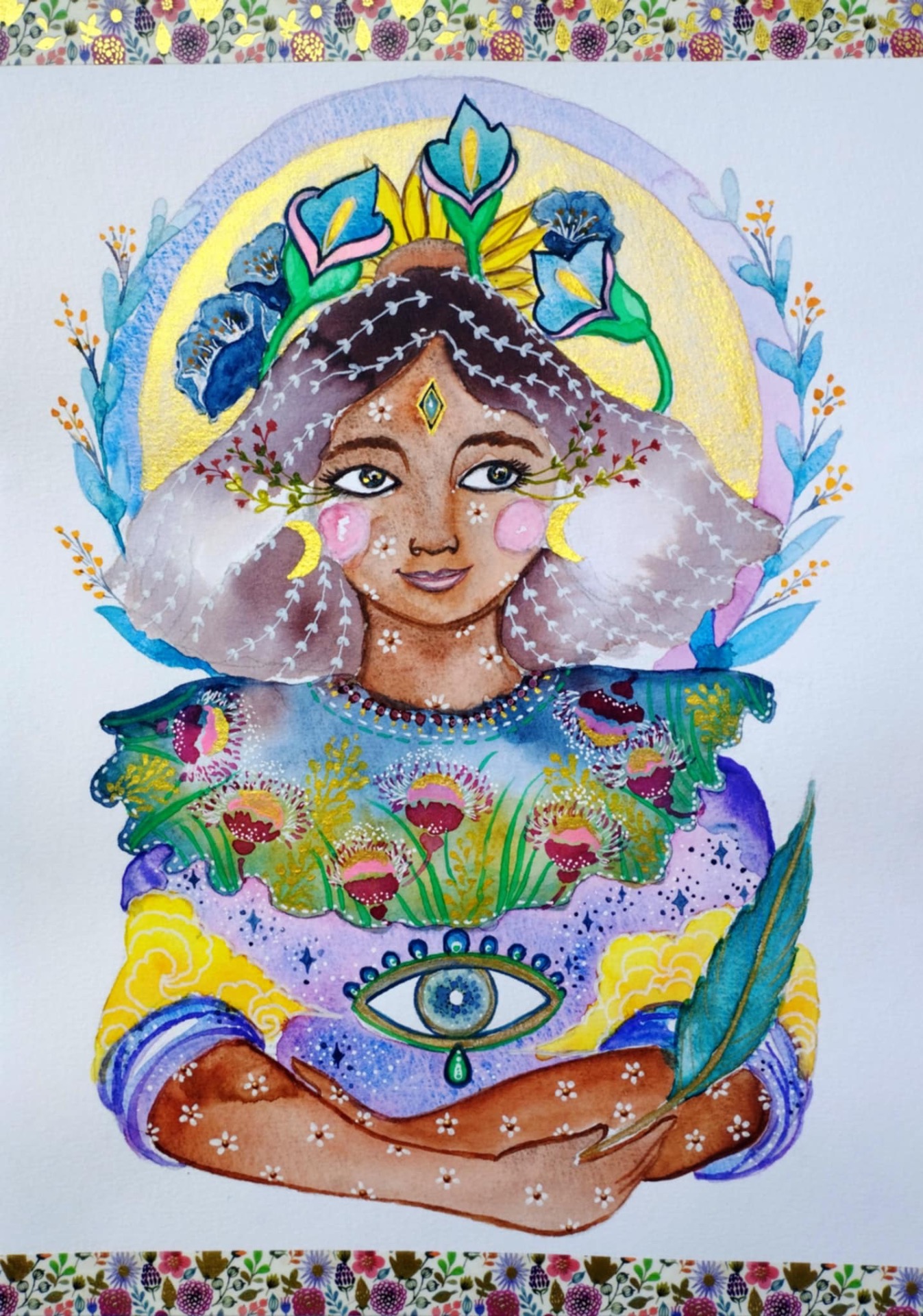 Notre société occidentale nous pousse à utiliser notre énergie Yang et nous fait oublier et mettre de côté notre puissance créatrice & intuitive. Afin de rééquilibrer et de réharmoniser notre nature Divine, en connexion avec notre sensibilité, j'ai décidé de peindre notre Déesse intérieure.