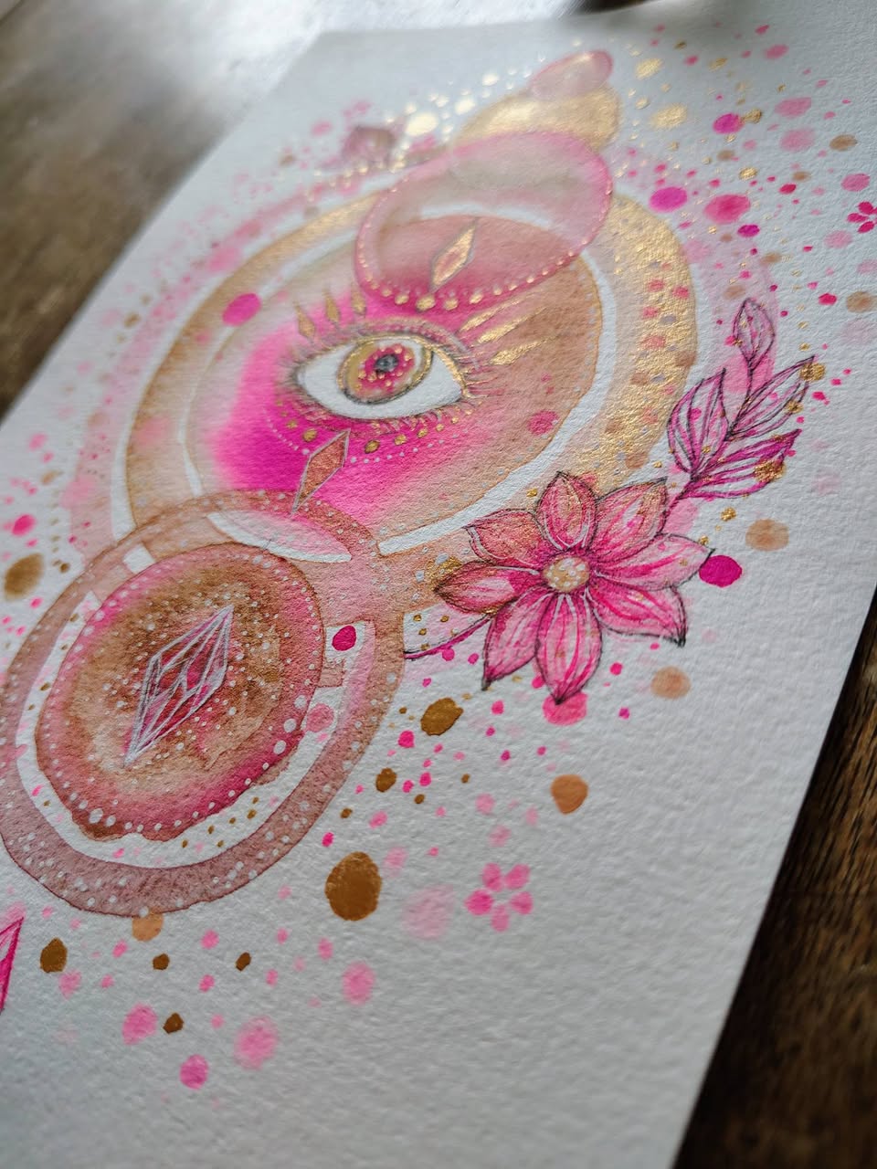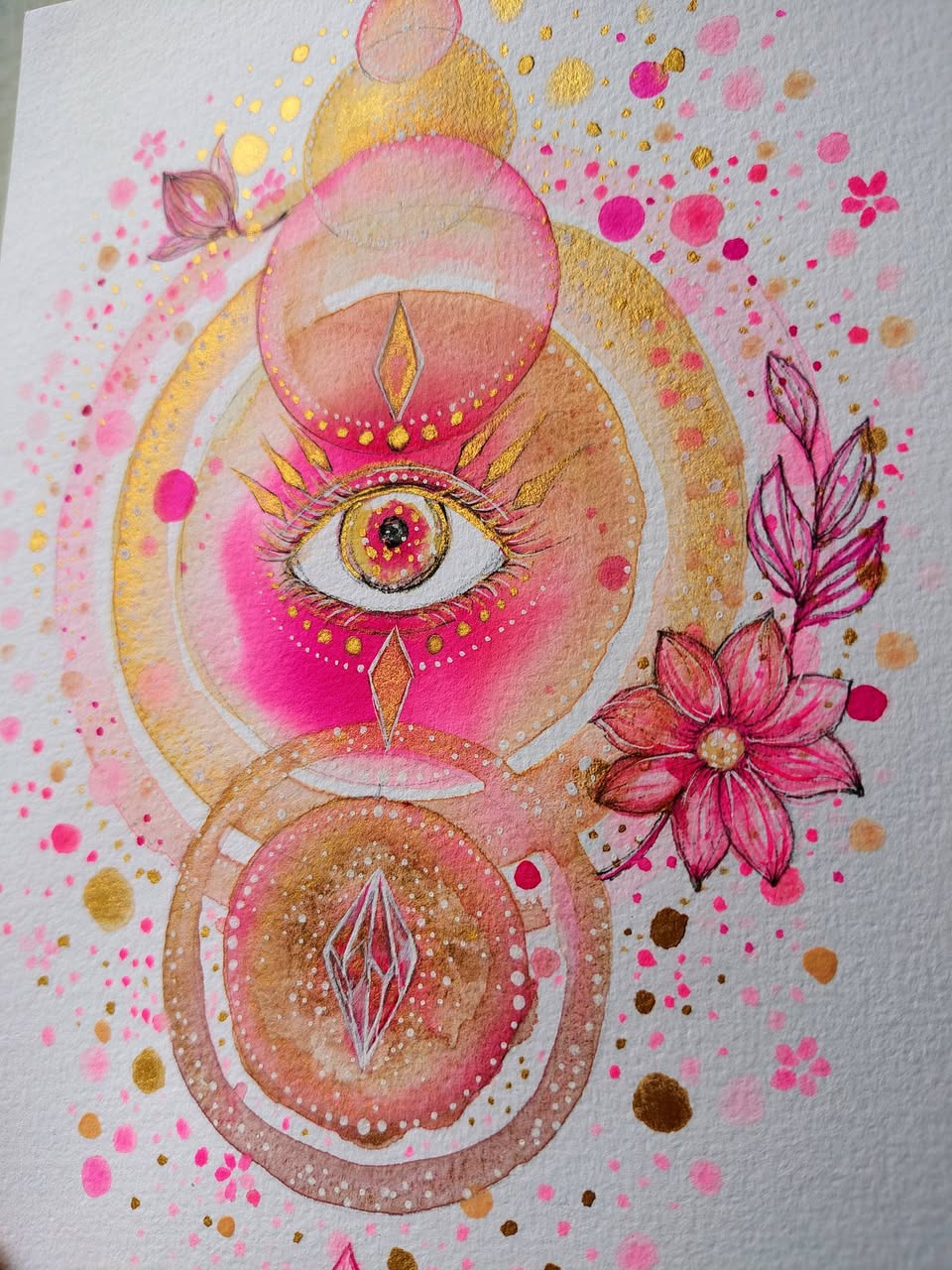 Cette peinture est en relation avec notre intuition et le chakra magenta, situé au-dessus du coronal.