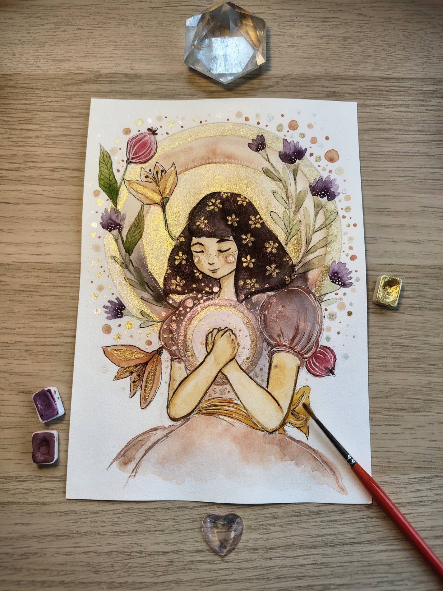 Aquarelle et Mantra accompagnant la peinture - Mon animal Totem 80 euros